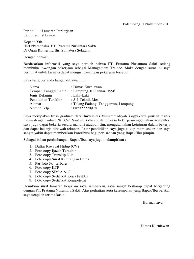 Contoh Surat Lamaran Kerja Di Pt Nusantara Sakti Group Yang Benar